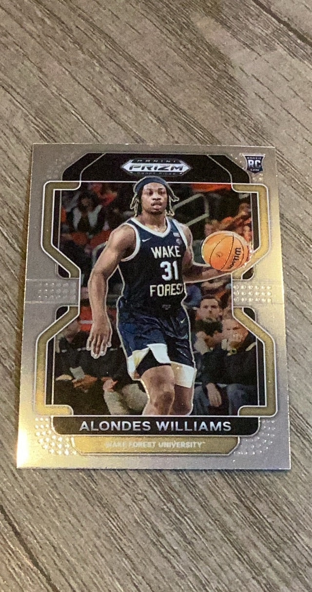 This 2022 Panini Prizm Draft Picks rookie card of Alondes Williams is a vibrant collectible for Brooklyn Nets fans, showcasing a former ACC Player of the Year!