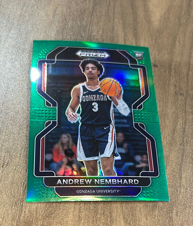 This 2022 Panini Prizm Draft Picks Green rookie card of Andrew Nembhard is a vibrant collectible for Gonzaga Bulldogs and Pacers fans, in near mint condition!