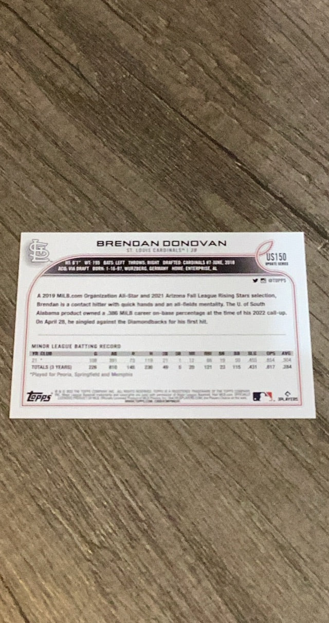 Discover the Brendan Donovan St. Louis Cardinals MLB 2022 Topps Update US150 RC, a must-have for any baseball card collector. This rookie card showcases Donovan's impressive debut season, capturing his potential and talent on the field.
