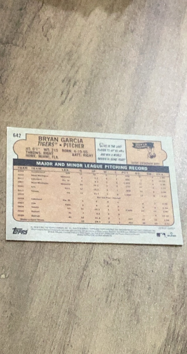 Bryan Garcia 2021 Topps Heritage rookie card. #642