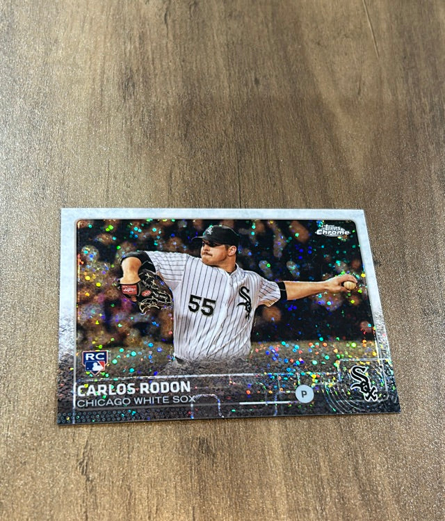 This 2015 Topps Chrome Update Sparkle Refractor rookie card of Carlos Rodon is a vibrant collectible for White Sox fans, featuring a unique parallel in new condition. Ideal for MLB collectors!