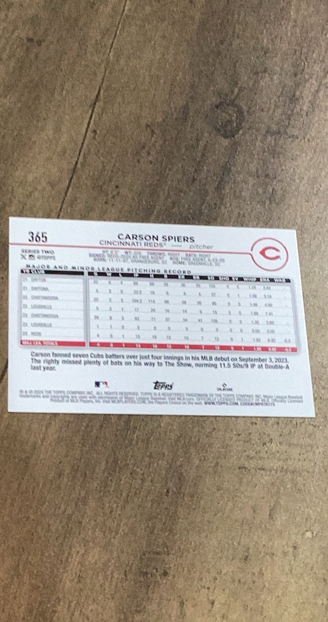 Carson Spiers 2024 Topps #365 rookie card.