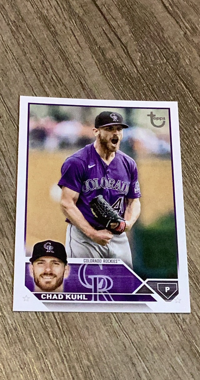 This 2023 Topps Advanced Stats card of Chad Kuhl is a vibrant collectible for Rockies fans, featuring a limited-edition parallel in new condition. Perfect for MLB collectors!