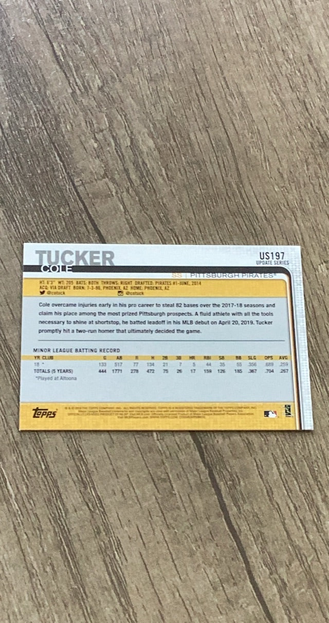 Cole Tucker 2019 Topps Update trading card. #US197