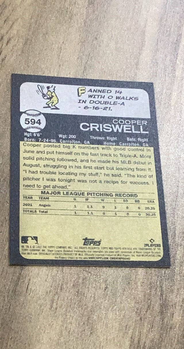 Cooper Criswell 2022 Topps Heritage rookie card. #594
