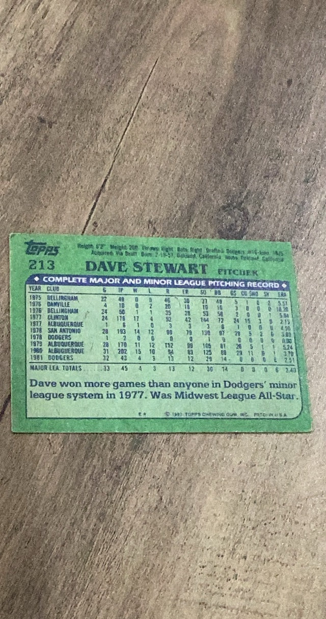 Classic 1982 Topps rookie card of Dave Stewart for Dodgers collectors!