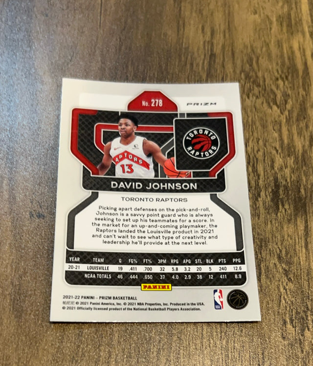 This 2021-22 Panini Prizm Ice parallel rookie card of David Johnson is a frosty future bet for Toronto Raptors collectors!