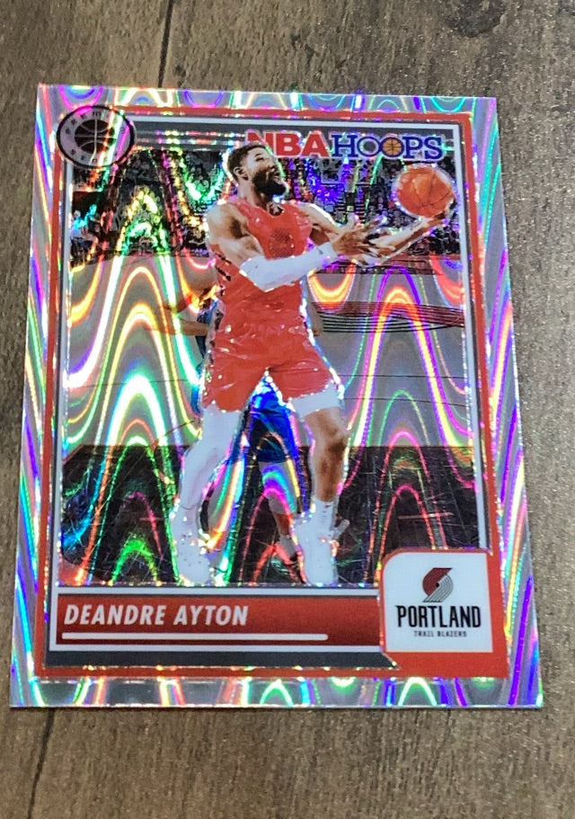 This 2023-24 Hoops Premium Stock Multi Wave Prizm card of Deandre Ayton is a vibrant collectible for Trail Blazers fans, featuring a stunning parallel in near mint condition. A must-have for NBA collectors!
