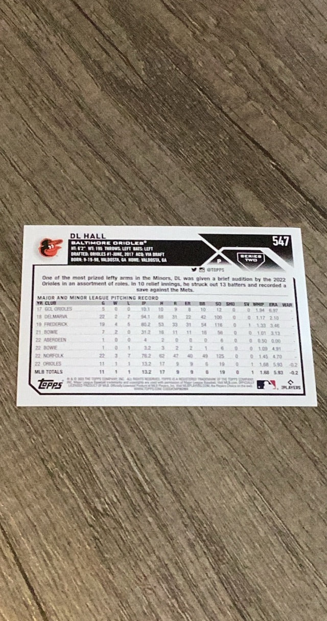 Introducing the DL Hall Baltimore Orioles MLB 2023 Topps 547 RC, a must-have for any serious collector. This rookie card showcases Hall's potential and talent, making it a valuable addition to your collection.