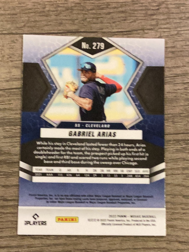 Introducing the Gabriel Arias Cleveland Indians MLB 2022 Panini Mosaic 279, a must-have for any baseball card collector. This stunning card features vibrant colors and intricate designs that showcase Arias's talent and potential.