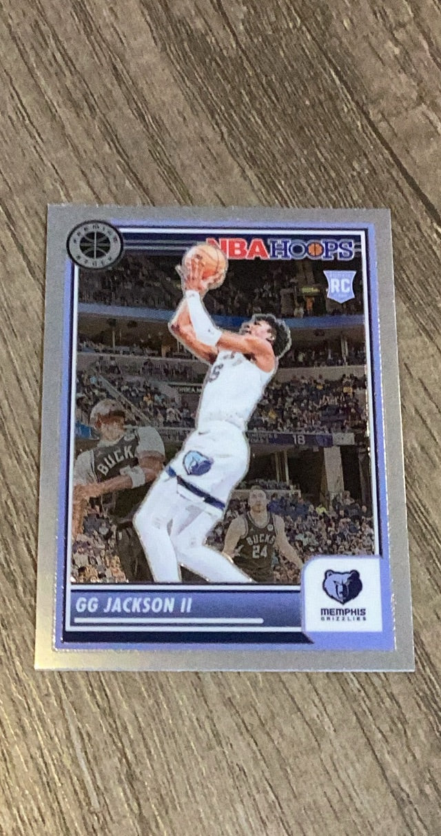 This 2023-24 Hoops Premium Stock Premium rookie card of GG Jackson II is a vibrant collectible for Grizzlies fans, showcasing a rising star in near mint condition. Perfect for NBA collectors!