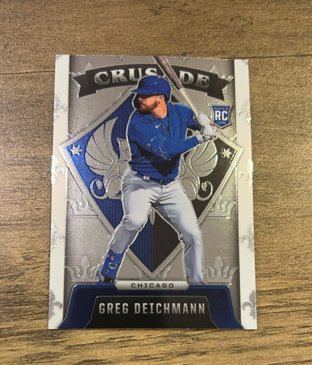 This 2022 Panini Chronicles Crusade rookie card of Greg Deichmann is a vibrant collectible for Cubs fans, showcasing a promising outfielder!