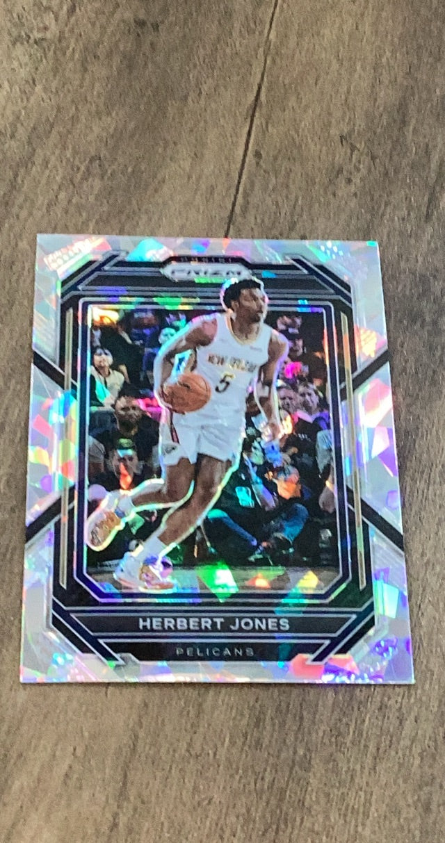 This 2022-23 Panini Prizm Ice parallel card of Herbert Jones is a frosty defensive masterpiece for New Orleans Pelicans collectors seeking lockdown specialists!