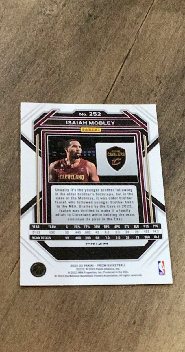 This 2022-23 Panini Prizm Prizms Red Ice parallel rookie card of Isaiah Mobley is a fiery family gem for Cleveland Cavaliers collectors!