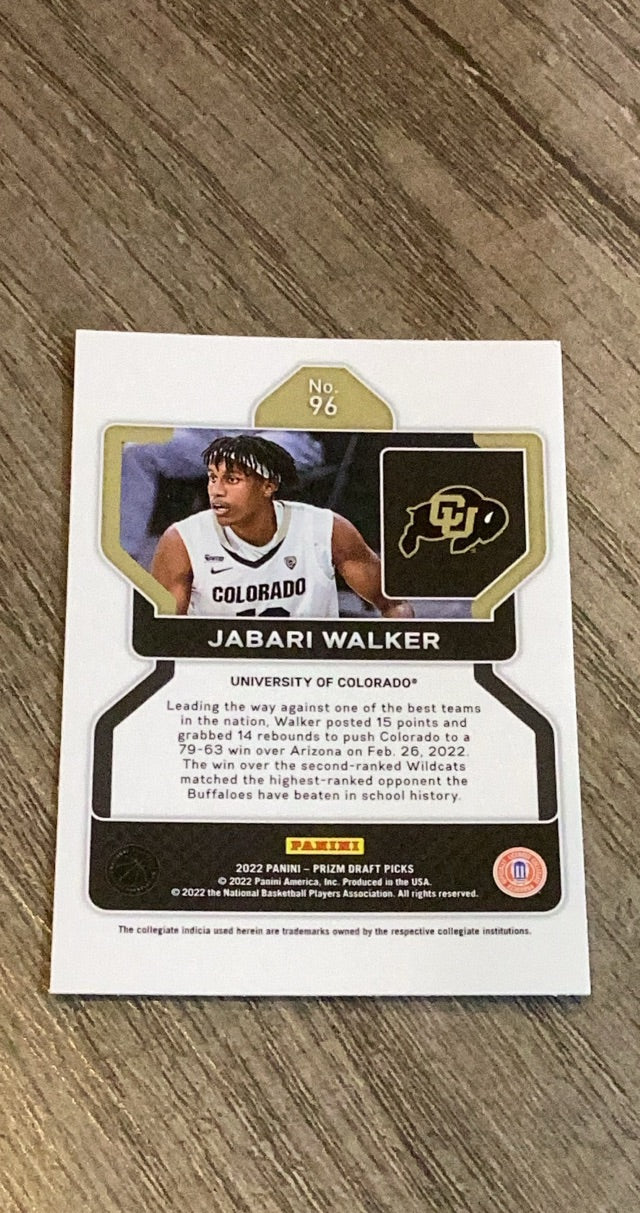 This 2022 Panini Prizm Draft Picks rookie card of Jabari Walker is a vibrant collectible for Portland Trail Blazers fans, showcasing a versatile forward with potential!