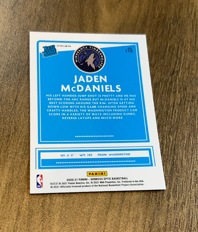Jaden McDaniels 2020-21 Donruss Optic - Purple trading card. 178