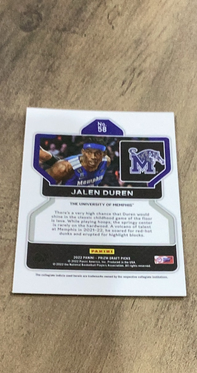 This 2022 Panini Prizm Draft Picks rookie card of Jalen Duren is a vibrant collectible for Memphis Tigers and Pistons fans, in new condition!