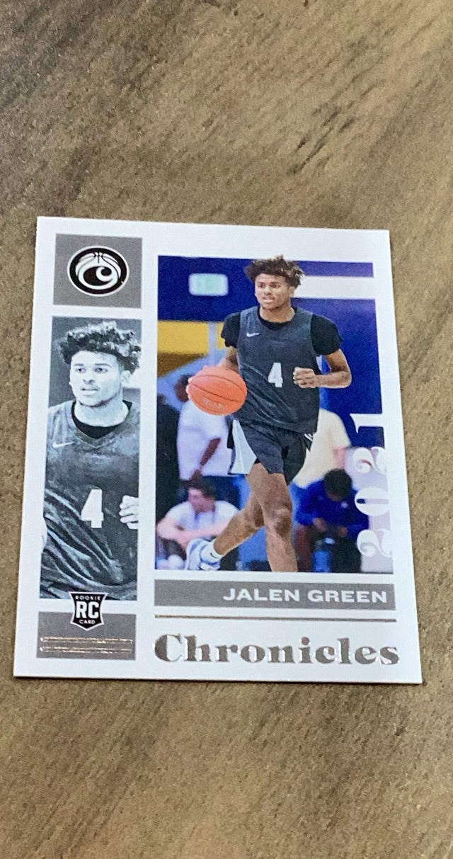 This 2021 Panini Chronicles Draft Picks rookie card of Jalen Green is a must-have for NBA G League Ignite and Rockets fans, in new condition!