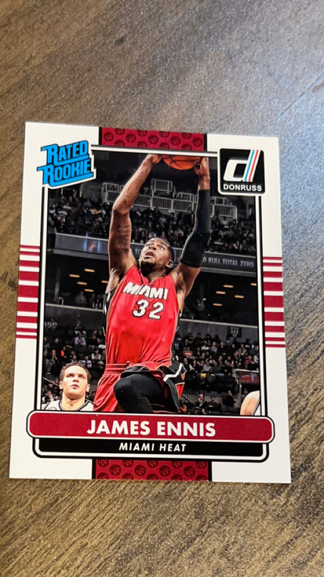 This 2014 Donruss rookie card of James Ennis captures the Miami Heat player’s early career. In Near Mint condition, it’s a great collectible for Heat fans and modern NBA collectors!