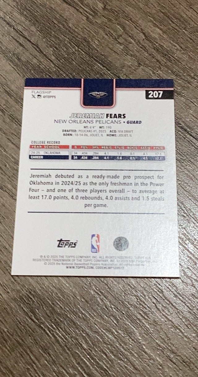 Jeremiah Fears 2025-26 Topps #207 RC.