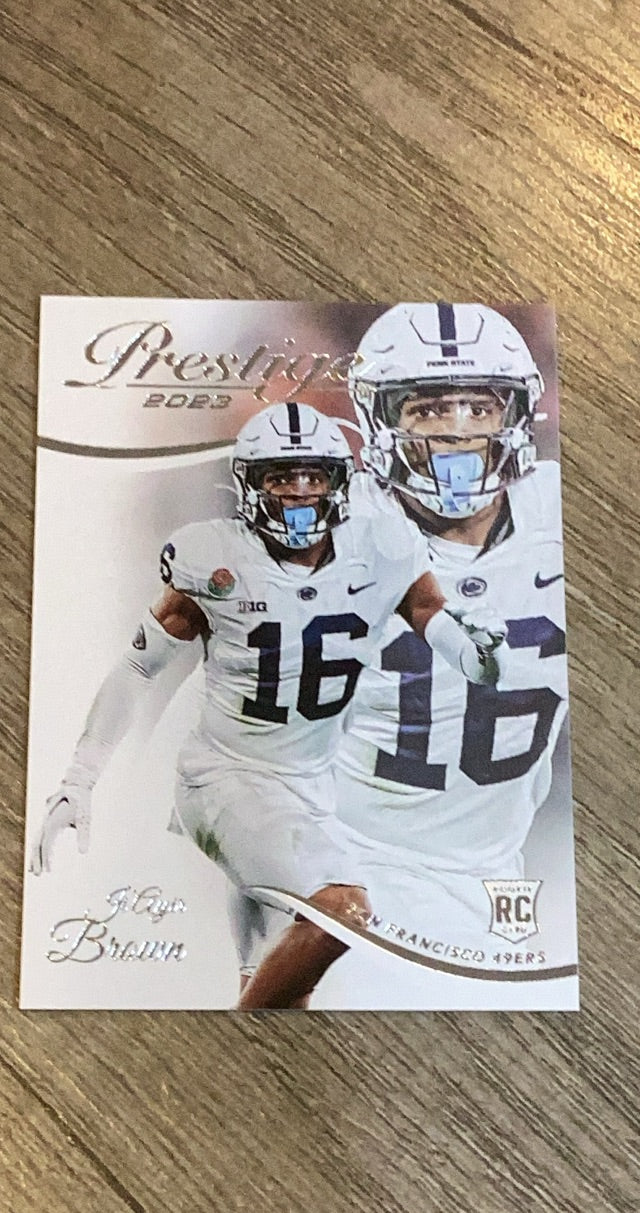 This 2023 Panini Prestige rookie card of Ji'Ayir Brown is essential for 49ers fans tracking rising defensive stars!