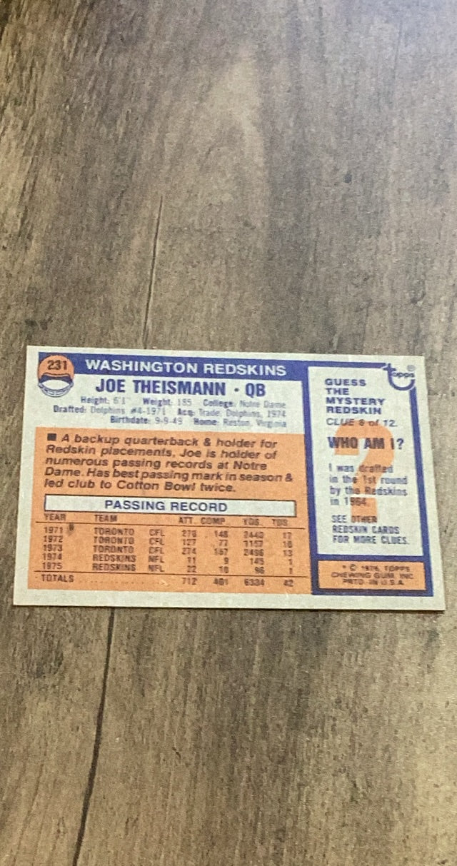 This 1976 Topps card of Joe Theismann is a must-have for Washington Redskins collectors!