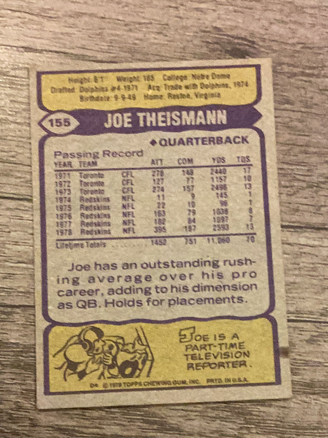 Joe Theismann 1979 Topps trading card. 155