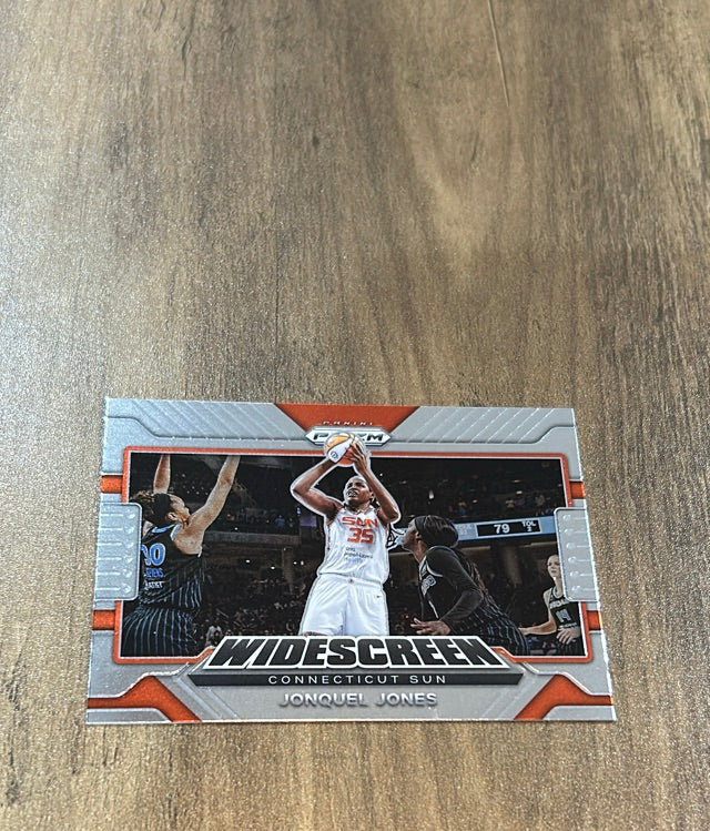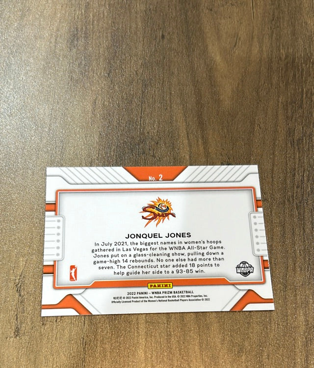 This 2022 Panini Prizm WNBA Widescreen insert card of Jonquel Jones is a premium collectible for Connecticut Sun fans, showcasing the 2021 WNBA MVP!