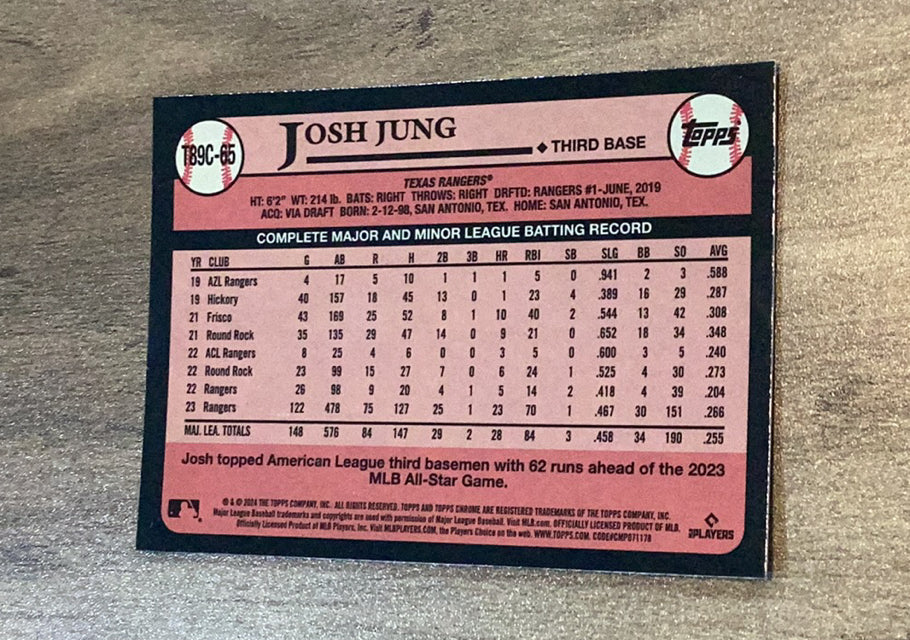 Josh Jung 2024 Topps 1989 Topps Baseball 35th Anniversary Chrome (Series One) trading card. #T89C-65
