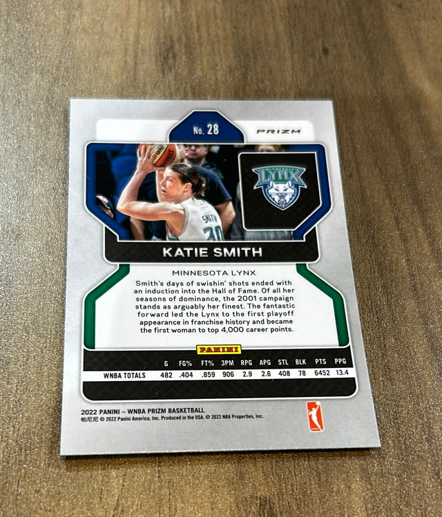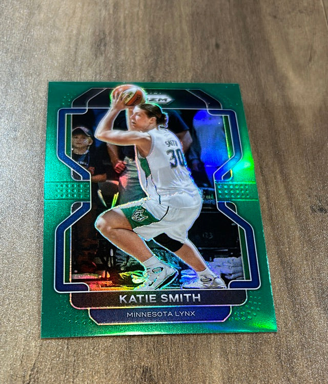 This 2022 Panini Prizm WNBA Green insert card of Katie Smith is a premium collectible for Minnesota Lynx fans, showcasing a Hall of Fame legend!