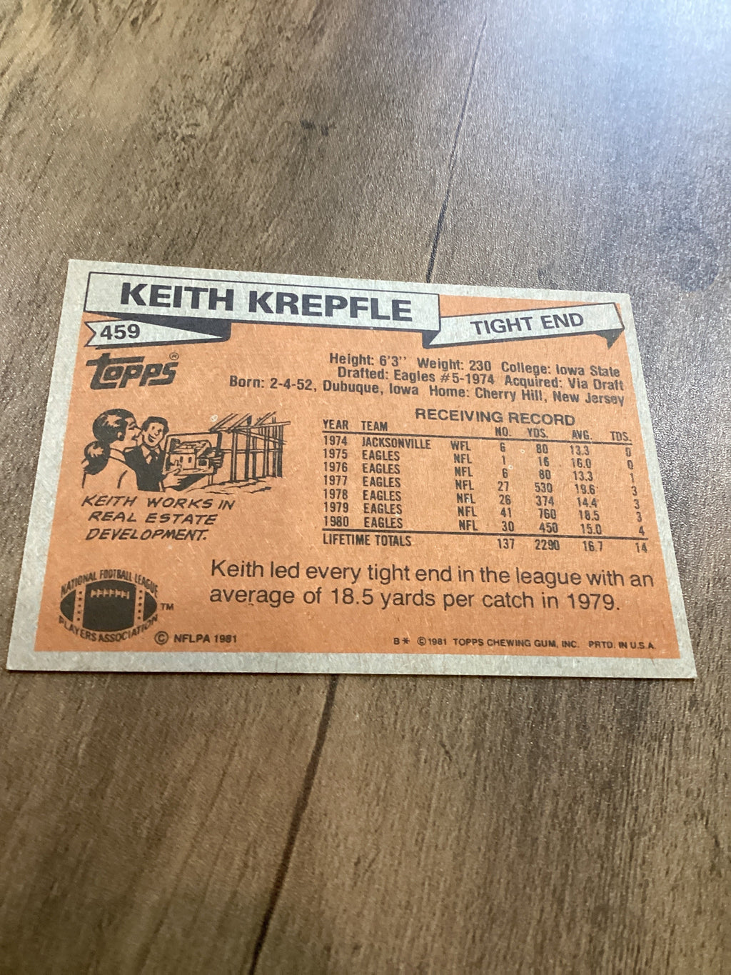 This 1981 Topps card of Keith Krepfle is a great addition for Philadelphia Eagles collectors!