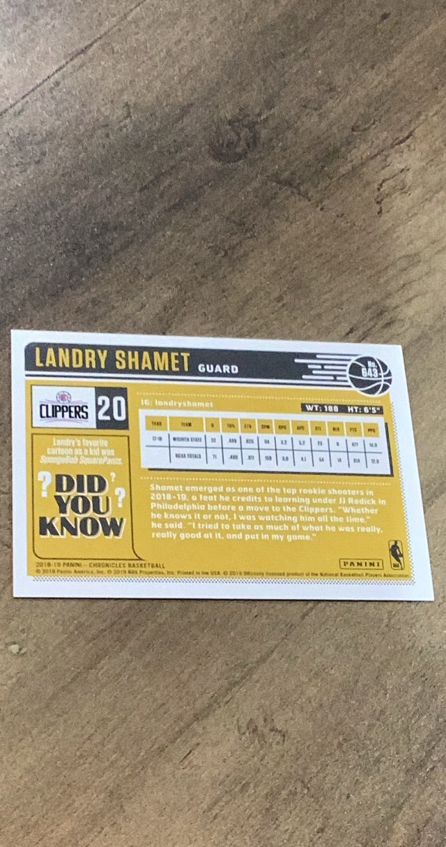 Landry Shamet 2018-19 Panini Chronicles Blue trading card. #643
