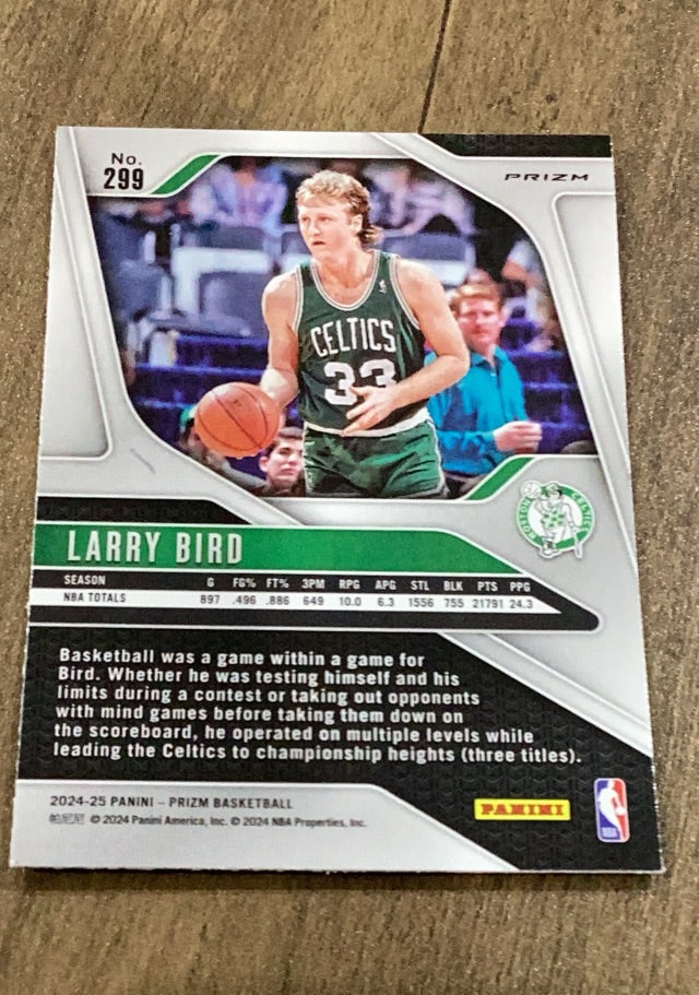 Larry Bird 2024-25 Prizm Red White and Blue trading card. #299