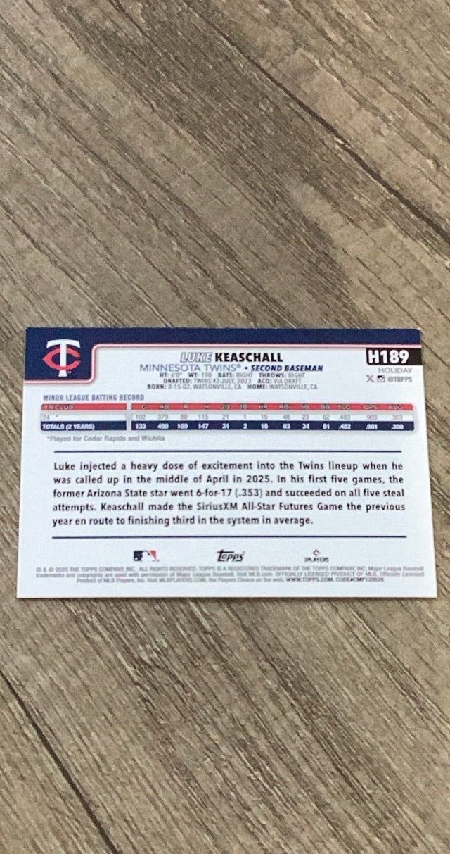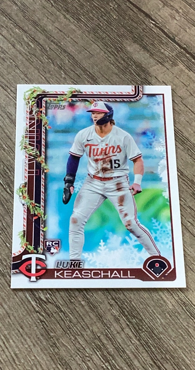 Festive 2025 Topps Holiday rookie of Twins prospect Luke Keaschall!
