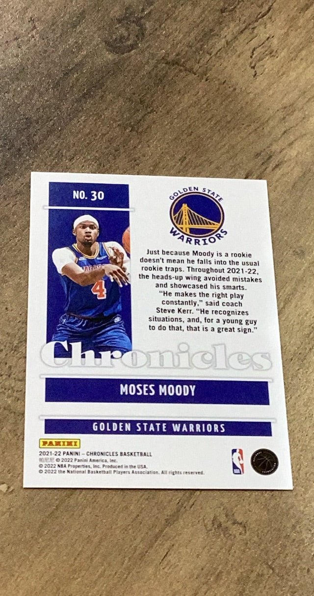 Moses Moody 2021-22 Panini Chronicles trading card. #30