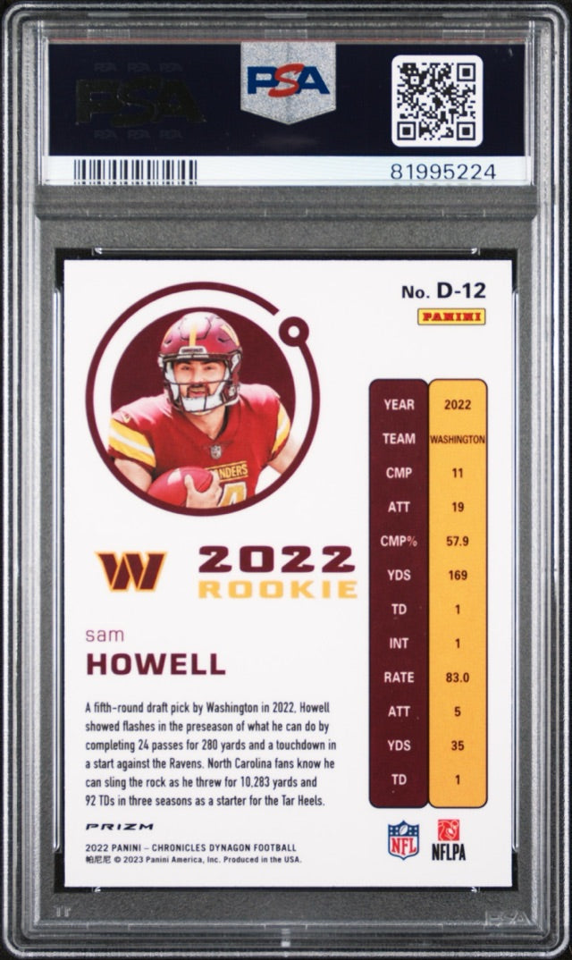 Sam Howell 2022 Panini Chronicles - Dynagon Rookie - Silver D-12 football card graded PSA 9. Trading card