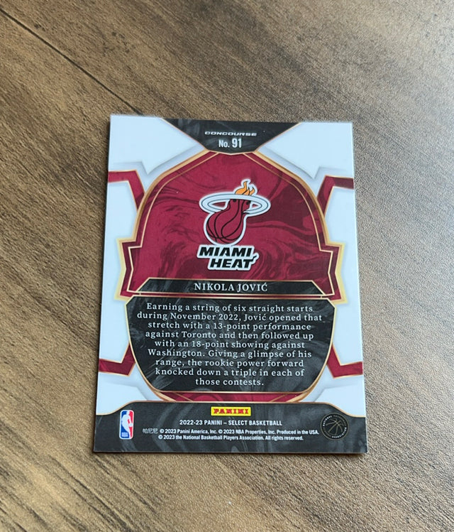 This 2022-23 Panini Select Blue Retail Base rookie card of Nikola Jovic is a vibrant collectible for Miami Heat fans, showcasing a skilled young forward!