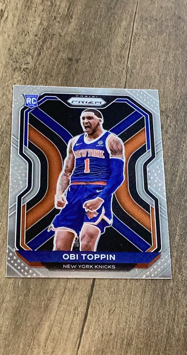 This 2020-21 Panini Prizm rookie card of Obi Toppin is a slam-dunk sensation for New York Knicks collectors!
