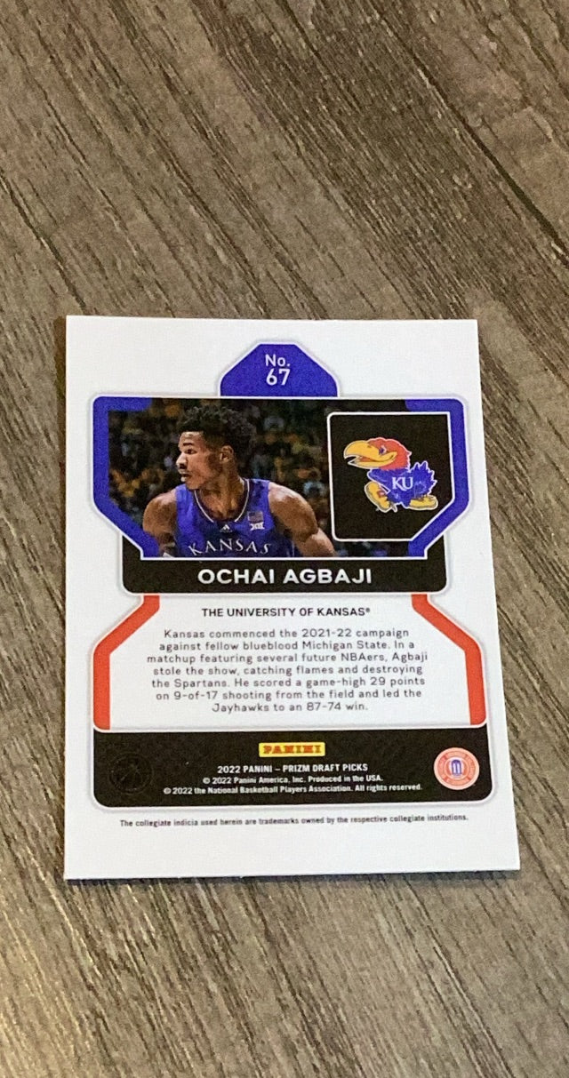 Ochai Agbaji 2022 Panini Prizm Draft Picks trading card. #67