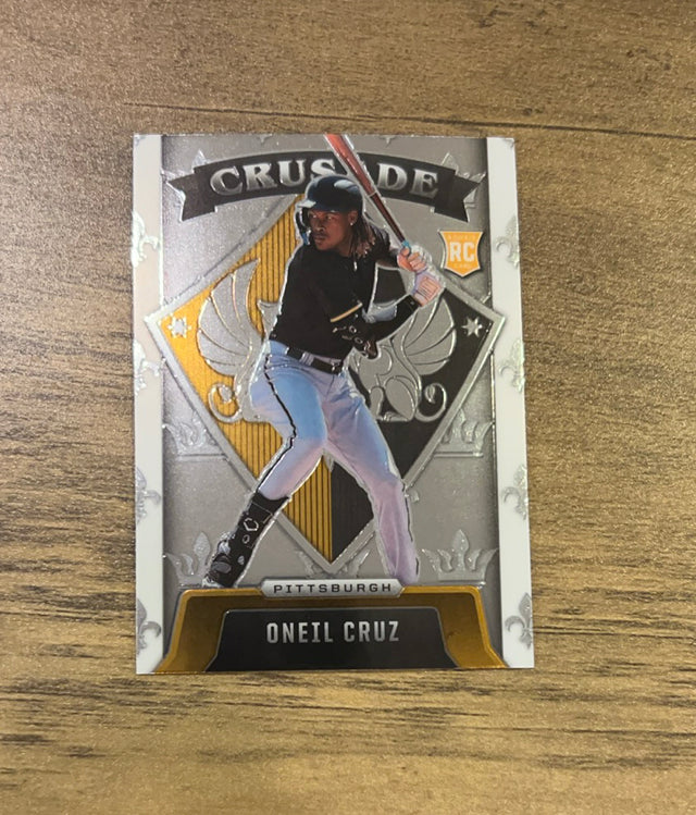 This 2022 Panini Chronicles Crusade rookie card of Oneil Cruz is a vibrant collectible for Pirates fans, showcasing a dynamic shortstop!