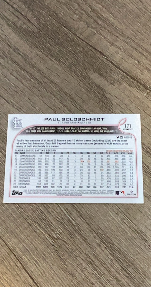 Clean Opening Day base of 2022 NL MVP Paul Goldschmidt!