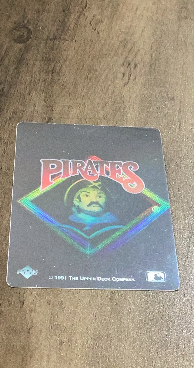 This 1991 Upper Deck Team Logo Holograms card is a unique collectible for Pirates fans, featuring a vibrant holographic design in new condition. Ideal for MLB collectors!