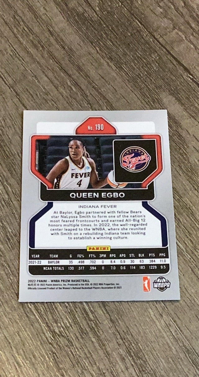 This 2022 Panini Prizm WNBA rookie card of Queen Egbo is a vibrant collectible for Indiana Fever fans, showcasing a promising center with potential!