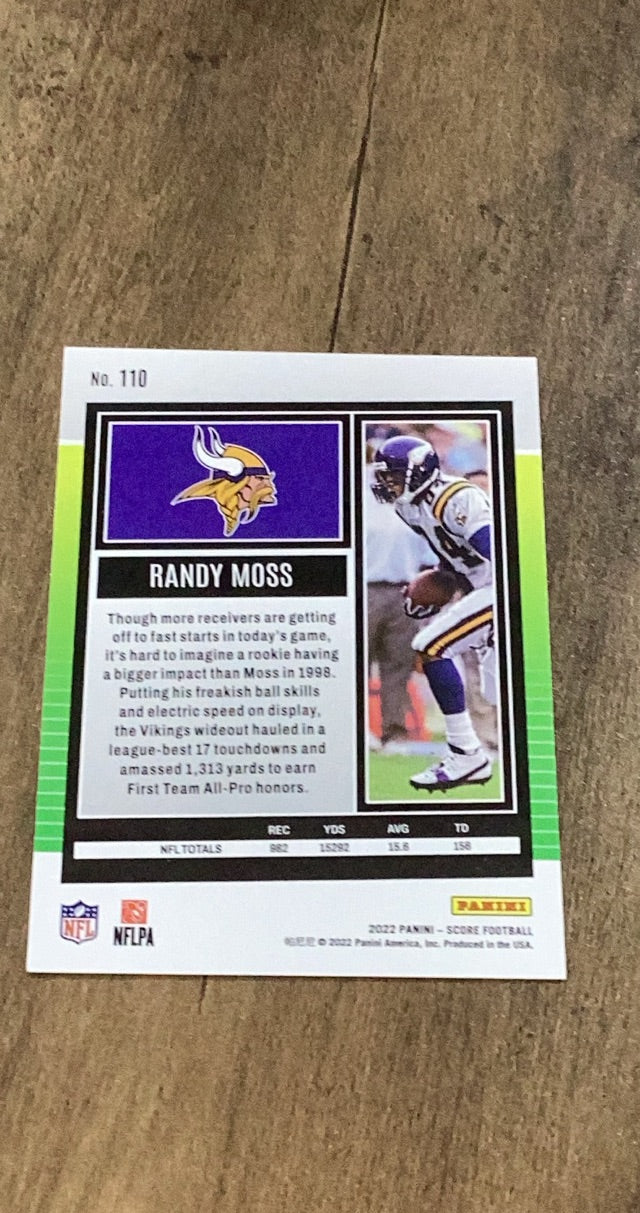 This 2022 Score card of Randy Moss is a must-have for Minnesota Vikings collectors!