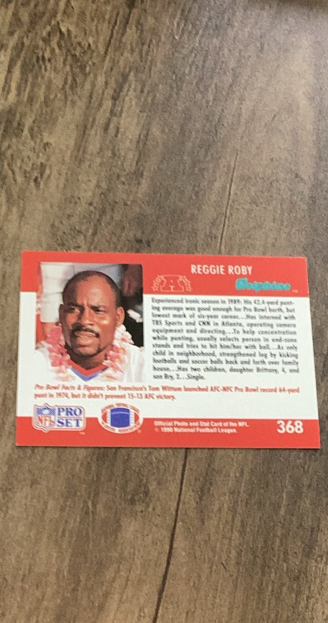 This 1990 Pro Set card of Reggie Roby is a great addition for Miami Dolphins collectors!