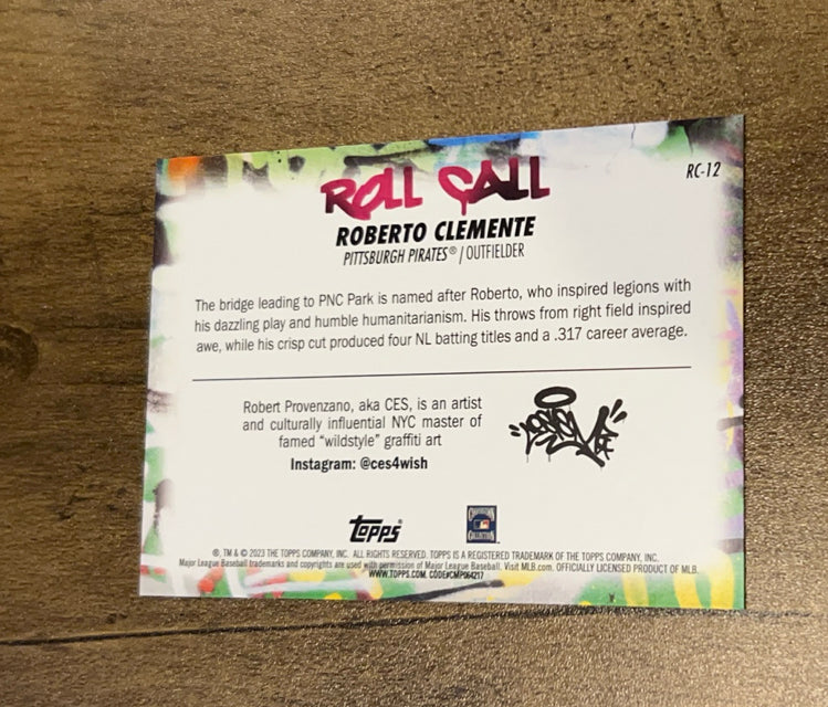 Roberto Clemente 2023 Topps Big League Roll Call Wildstyle Edition trading card. #RC-12
