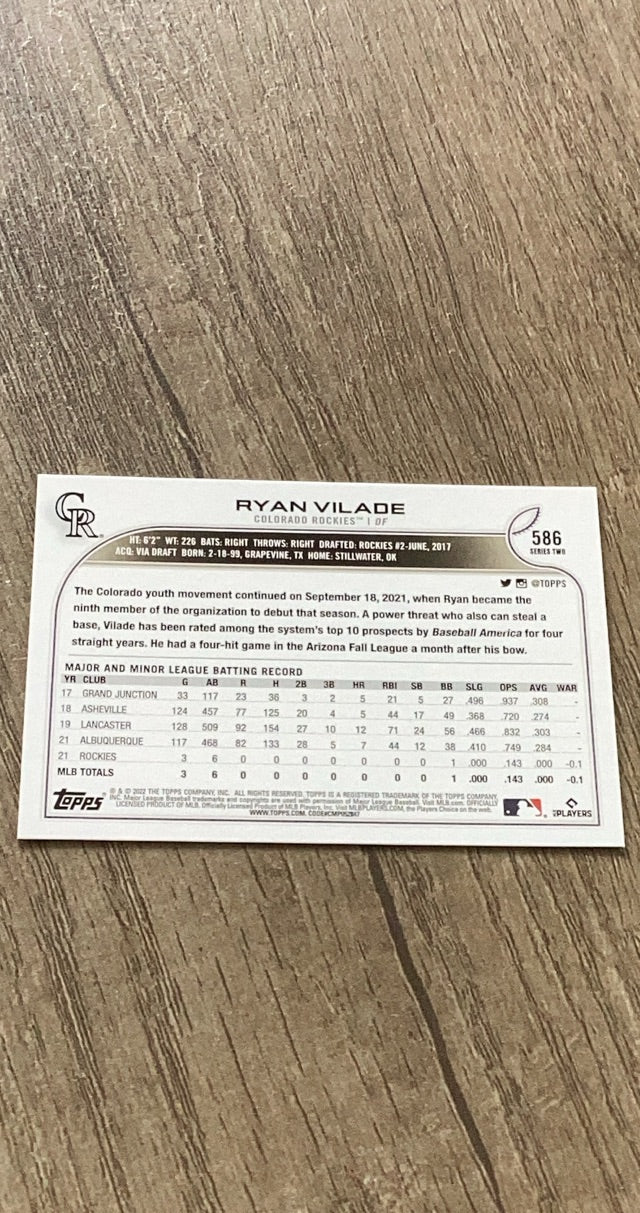 This 2022 Topps rookie card of Ryan Vilade is a high-upside grab for Rockies fans betting on Coors Field magic!