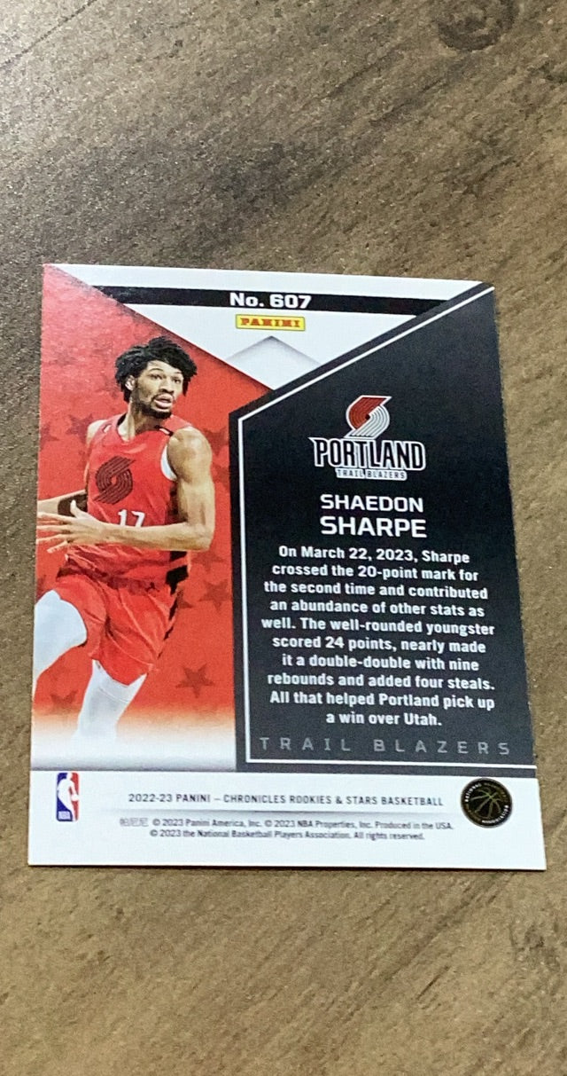 Shaedon Sharpe 2022-23 Panini Chronicles trading card. 607