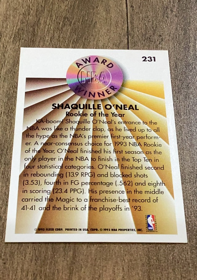 Shaquille O'Neal 1993 Fleer trading card. #231