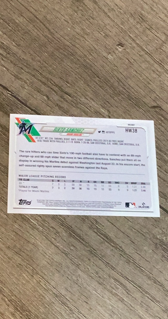 Sixto Sanchez 2021 Topps Holiday trading card. #HW38